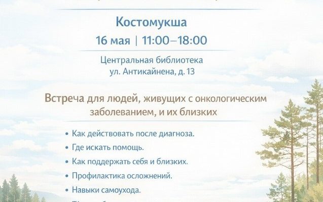 16 мая команда благотворительного фонда имени Арины Тубис проведет в Костомукше выездную встречу для людей, живущих с онкологическим заболеванием, и их близких.