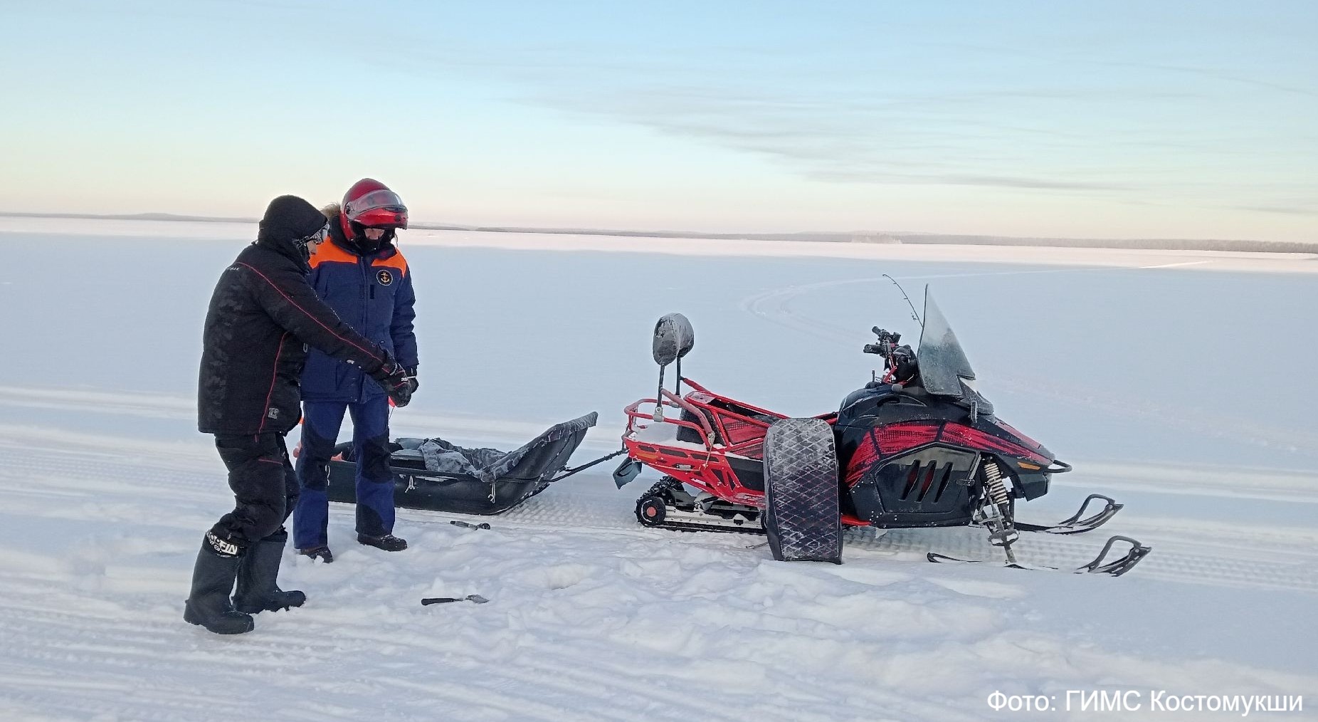 В ходе мониторинга ледового покрытия спасатели провели замеры. Лёд хороший, однородный – 40-45 сантиметров. За исключением родничков у Мёлько-губы и реки Ливо. Там толщина льда гораздо меньше. Поверх льда снежное покрывало всего 10-20 см. Также местами из-подо льда торчат камни.