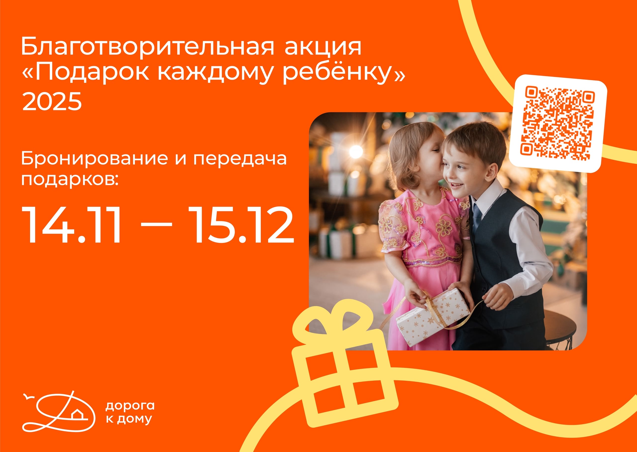 Благотворительный фонд «Дорога к дому» объявил о запуске традиционной акции «Подарок каждому ребёнку»: она будет проходить с 14 ноября по 15 декабря.