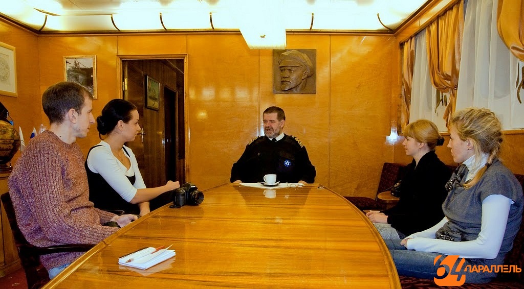За завтраком последовала встреча с капитаном ледокола Александром Николаевичем Бариновым: он много рассказал нам о самом ледоколе, о плаваниях, в которых он бывал, о жизни на ледоколе. Глядя на него и его команду, хотелось немедленно отправиться покорять Арктику.