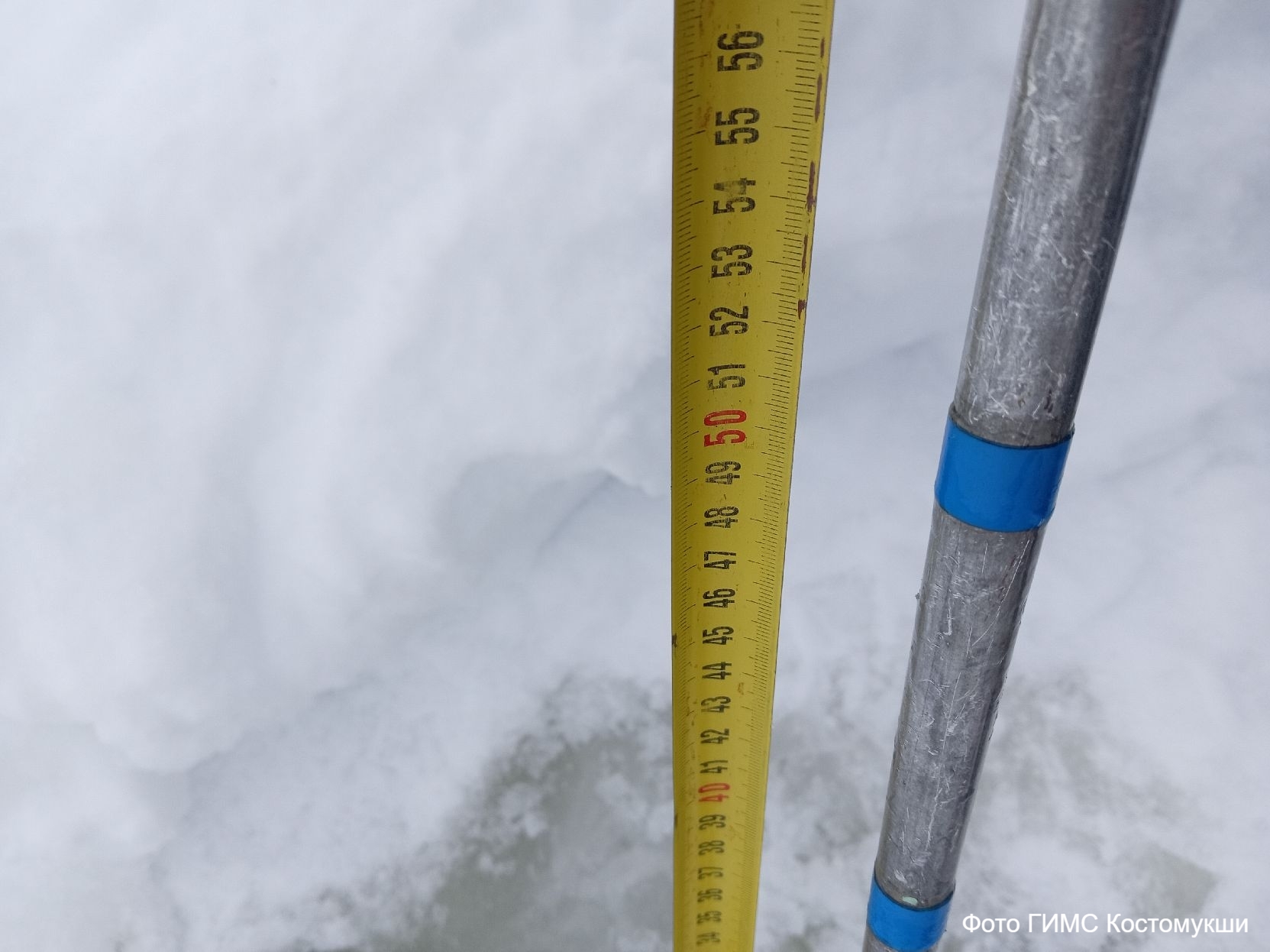 Инспекторы костомукшского участка ГИМС проверили состояние льда на озере Контокки и поделились результатами замеров.