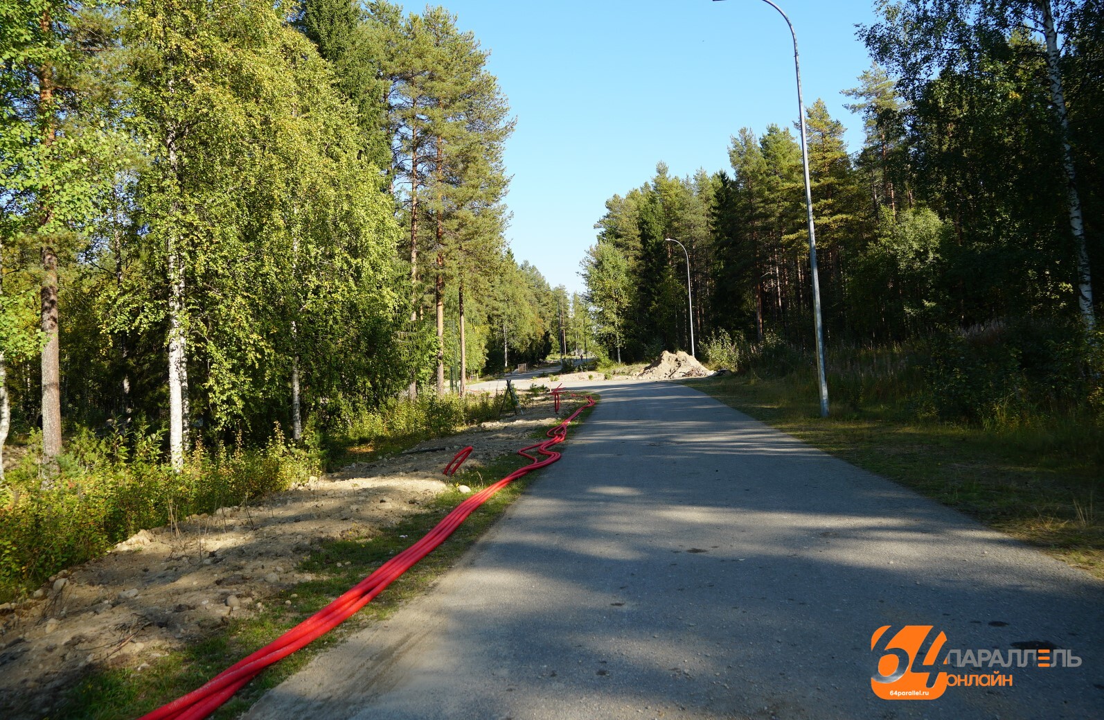 Ранее «64 параллель» сообщала, что набережная получит разнообразное световое оформление. Пешеходные пути, тротуары и площадки на проектируемом участке будут оборудованы наружным освещением, в том числе подсветкой светодиодной лентой малых архитектурных форм, прожекторами на сцене, ландшафтными светильниками для подсветки деревьев. Одним словом, красота! Сейчас можно наблюдать красные трубы, проложенные для освещения. Цвет таких труб не случаен: он указывает на напряжение защищаемого кабеля, обеспечивая защиту от внешних воздействий и идентификацию системы.