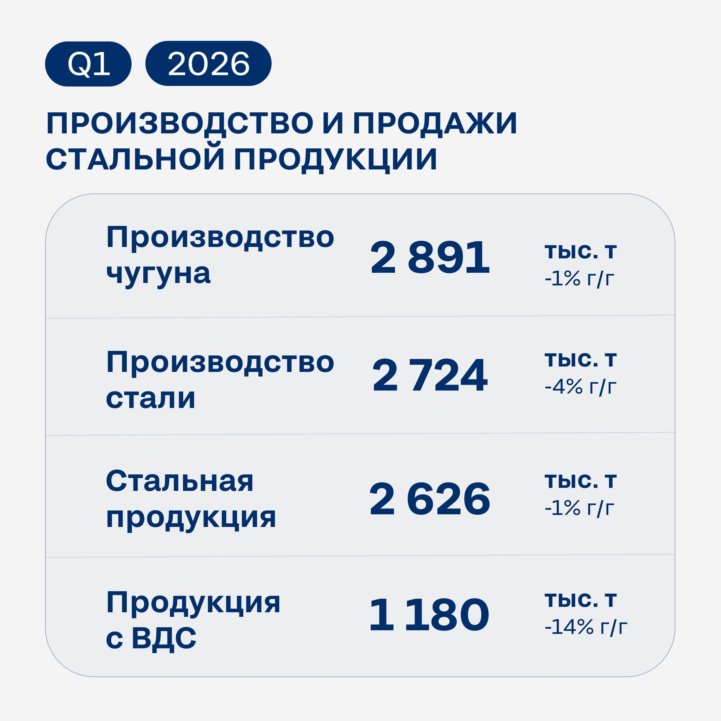 Александр Шевелёв, генеральный директор компании, отмечает, что ситуация в отрасли остаётся сложной. Спрос на сталь в России продолжает снижаться: за три месяца 2026 года потребление металла упало на 15 процентов в годовом сопоставлении. Резкое охлаждение рынка под влиянием жёсткой денежно-кредитной политики привело к снижению загрузки мощностей у наших ключевых клиентов и падению цен. Так, в первом квартале средняя котировка на горячекатаный лист в России снизилась на 7 процентов.