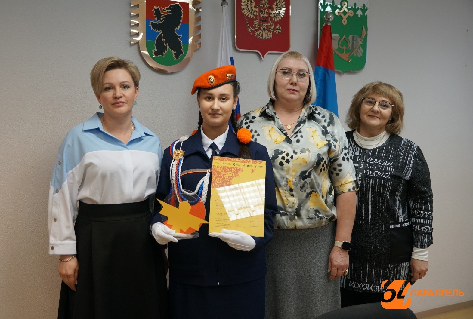 – Диана – экскурсовод-исследователь музея воинской славы, актриса театра «Родники», миротворец, активист «Движения первых». Спасибо за воспитание дочери с активной жизненной позицией! – сказала депутат Совета Надежда Герасимчук, которая является и директором Пушкинской школы.