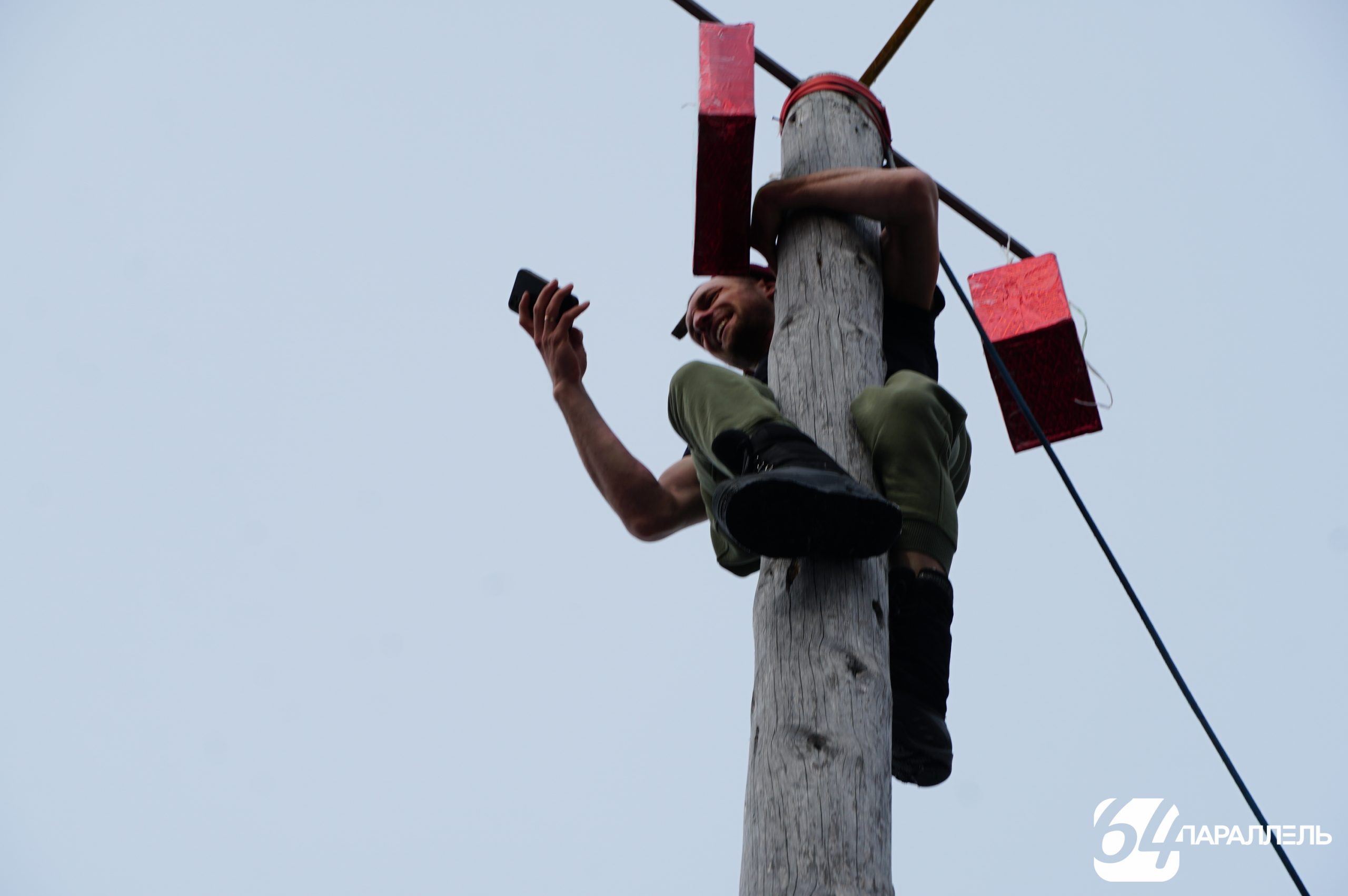 Зрители также с азартом следили за попытками покорить столб с подарками от меценатов: магазина DNS, агентства недвижимости «Республика», магазина «Принцип» и компании «Термонен». Несколько отважных молодых людей вступили в борьбу за призы, но добраться до вершины удалось лишь двоим. Особенно отличился Алексей Володин: он покорил столб дважды.