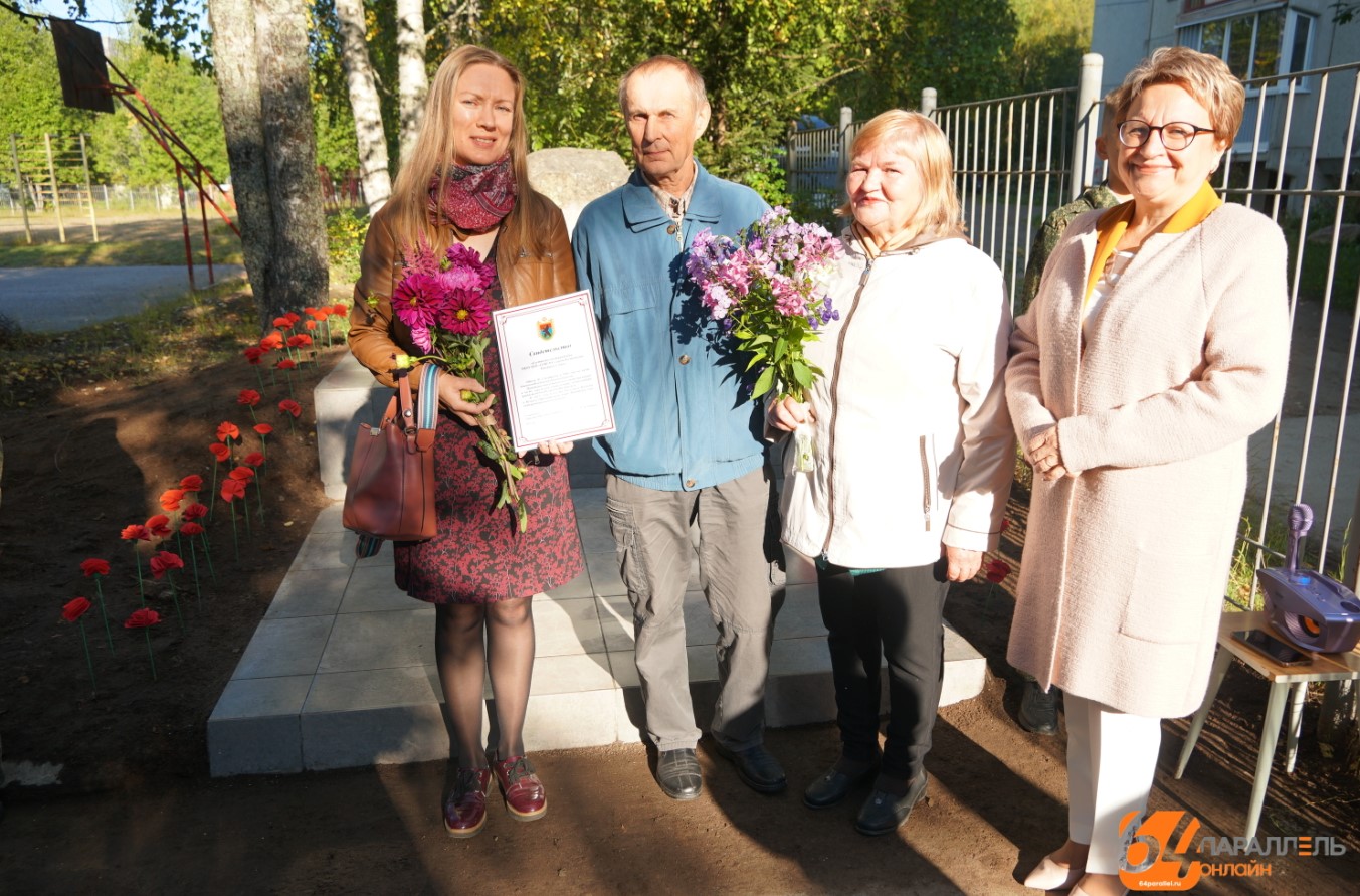 В День знаний в костомукшской школе № 3 открыли обновлённый памятный знак, посвящённый учителю и разведчице Ольге Филипповой, погибшей во время Великой Отечественной войны.