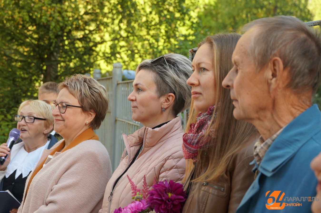 И вот – долгожданное открытие. На линейке около памятного знака присутствовали не только ученики школы и их педагоги, но и почётные гости – родственники Ольги Филипповой Юлия Михайловна и Михаил Егорович Филипповы, а также краевед Валентина Пацукевич.