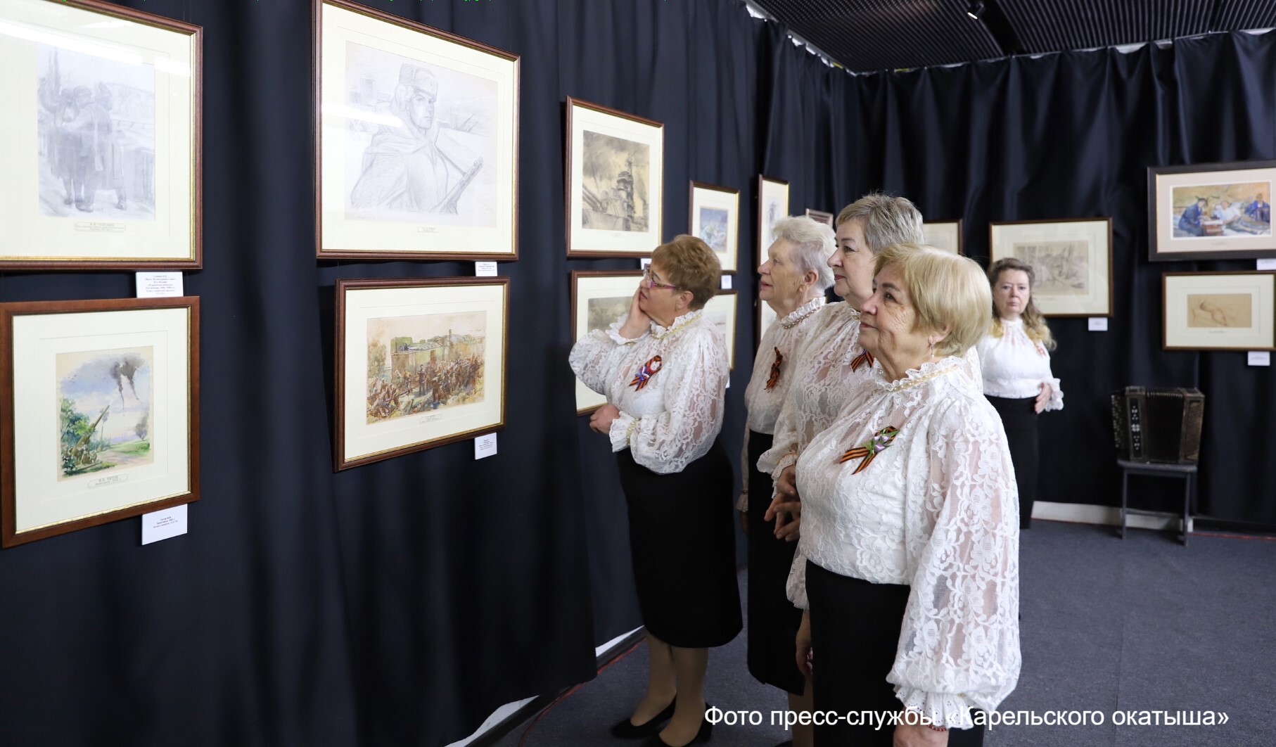 В музее Костомукши открылась выставка графики и акварели «Во славу Подвига. Искусство на войне». Она является частью большого проекта, посвящённого 80-летию Великой Победы.