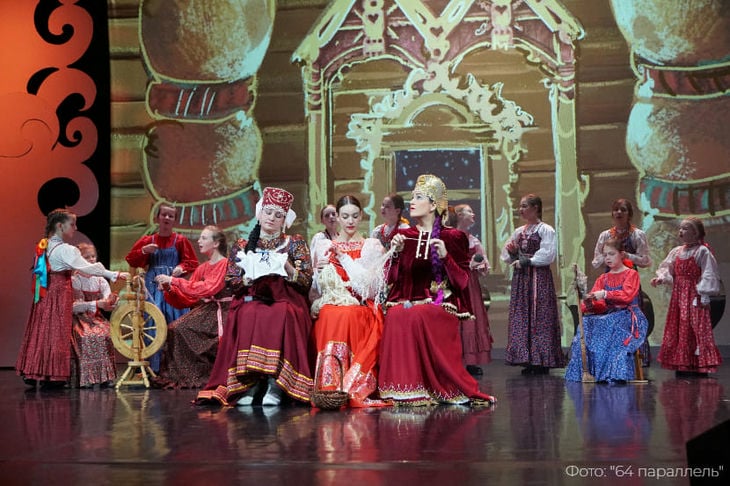 Спектакль поставлен по мотивам знаменитого произведения Александра Пушкина. Сказка посвящена истории женитьбы царя Салтана и рождению его сына, князя Гвидона, который из-за козней тёток попал на необитаемый остров, встретил там волшебницу – царевну Лебедь. С её магической помощью он стал могущественным владыкой, женился на царевне и воссоединился с отцом. Спектакль вобрал в себя не только традиционное повествование пушкинского сюжета. На сцену выходили Дед Мороз и Снегурочка, а в конце сказки зрители вместе с символом года – драконом – зажгли огни на новогодней ёлке. Режиссёр-постановщик спектакля – Елена Володина.