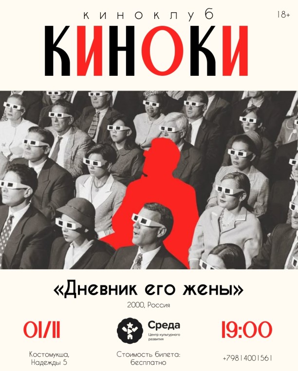 Первого ноября состоится очередная встреча киноклуба «Киноки» в ЦКР «Среда». К просмотру и дальнейшему обсуждению будет представлен фильм «Дневник его жены» – пронзительная история о последних годах жизни великого русского писателя Ивана Бунина. Режиссёр фильма – Алексей Учитель, в главных ролях снялись Андрей Смирнов, Галина Тюнина и Евгений Миронов. (18+)