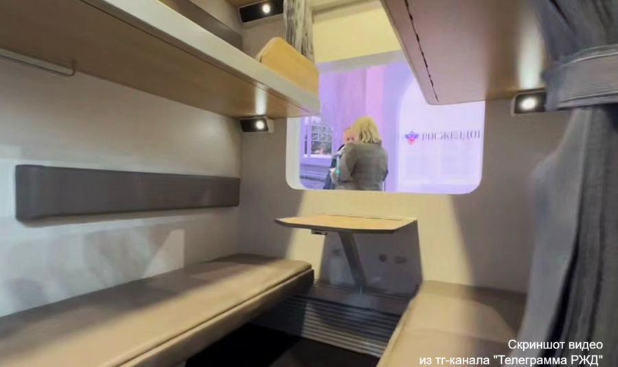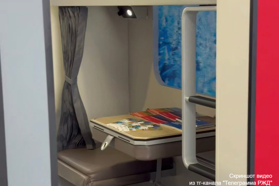 Компания «РЖД» представила новый плацкартный вагон на выставке-форуме «Транспорт России». На макете можно увидеть, как будет выглядеть отсек со спальными местами вагона габарита Т.