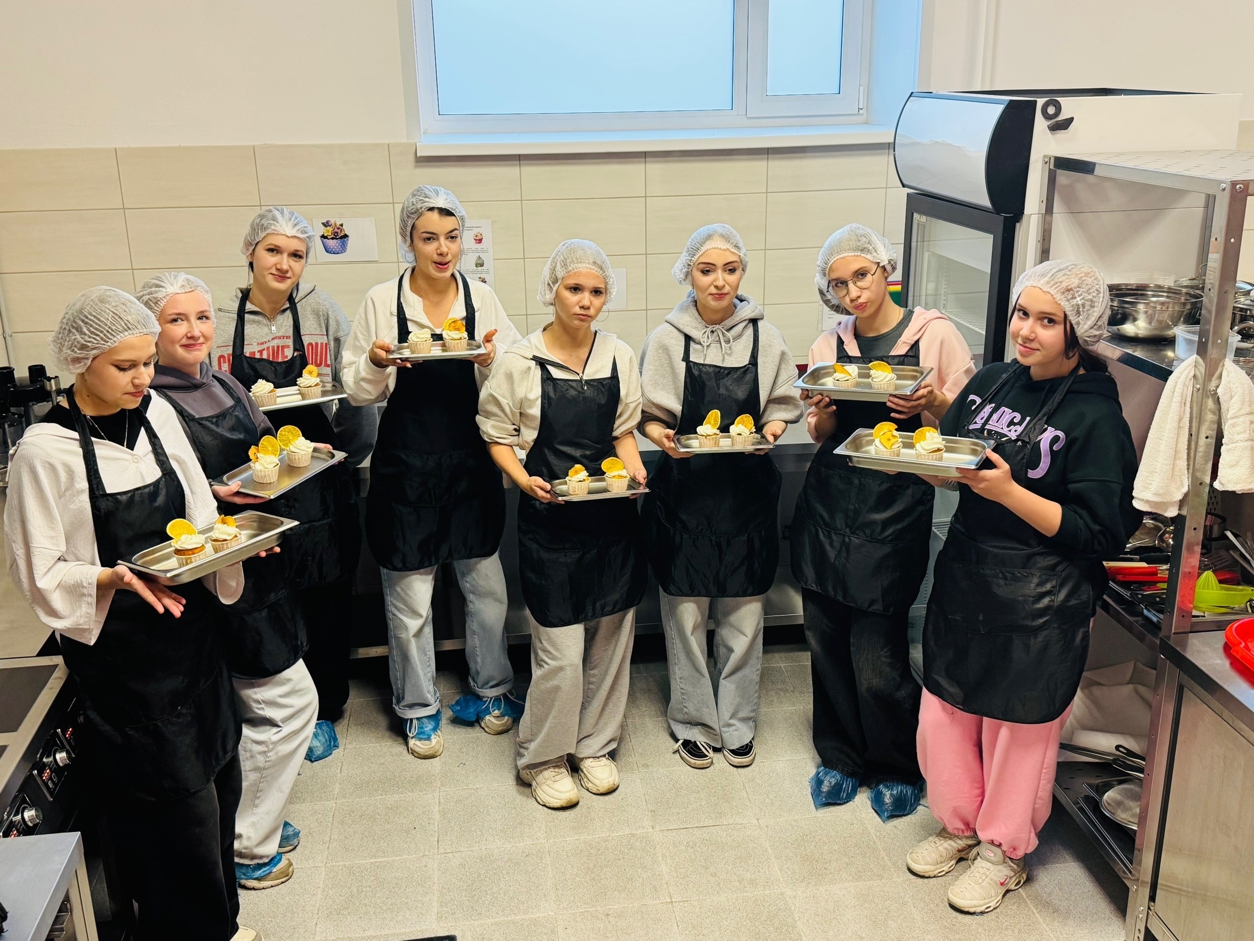 Обучение состоялось в рамках федерального проекта «Билет в будущее». Опытные мастера колледжа провели для школьников увлекательные профессиональные пробы по специальности «Кондитер». Мастер-класс провела Людмила Юрьевна Симон, опытный мастер производственного обучения. Под её чутким руководством ребята освоили технологию приготовления изысканных морковных капкейков с лимонным курдом и кремом из маскарпоне.