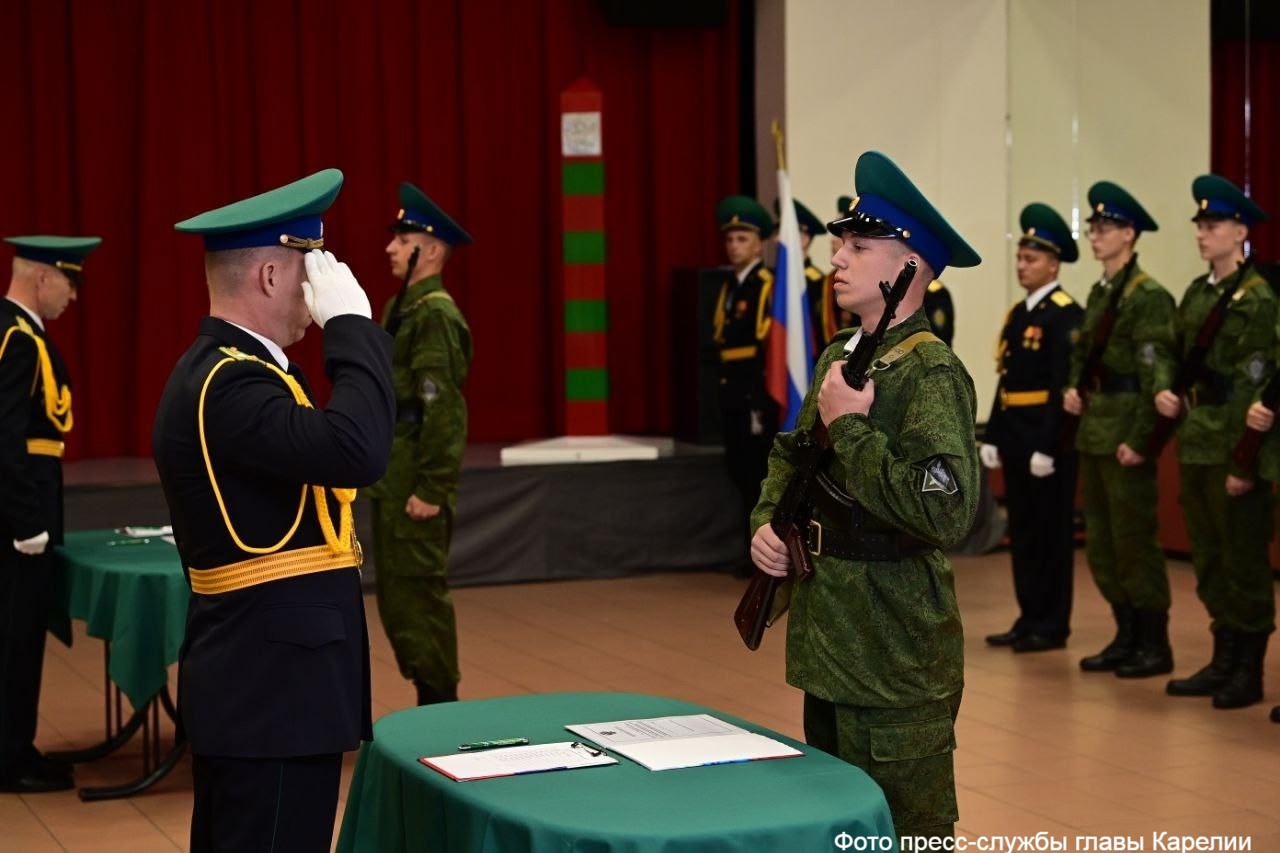 В рамках рабочего визита в Костомукшу делегация правительства Карелии во главе с руководителем республики приняла участие в торжественной церемонии принятия военной присяги солдатами пограничных войск. Глава республики лично поздравил новобранцев с этим знаменательным событием в их жизни.