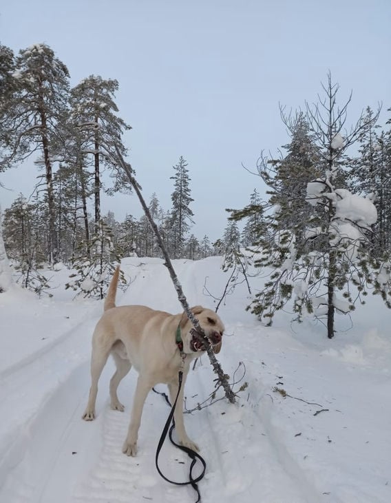 – Шанель я привезла из Питера в марте 2016 года. Ее отдавали в возрасте 9 месяцев. Увиделись мы с ней впервые поздно вечером, при свете фонаря на улице. После обычного обнюхивания она ушла по своим собачьим делам, а я расспросила хозяйку о щенке: что любит, чего боится, как ведет себя в семье. После я предложила будущему питомцу мяч, та с удовольствием стала носиться за ним и приносить обратно. Вот так в мартовскую ночь мы поехали с Шанель на поезде до Петрозаводска, и далее уже в Костомукшу. Дополню, что ранее Шанель уже посмотрели опытные кинологи, и комиссия приняла решение о ее пригодности для службы. Конечно, уезжая из Питера, Шанель поначалу оглядывалась и искала глазами хозяйку. Однако потом приняла и меня. Адаптация прошла быстро: мы все время были вместе, много гуляли, играли, общались.