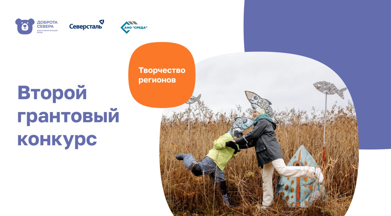 Благотворительный фонд «Доброта Севера» объявил о старте второго цикла грантового конкурса программы «Творчество регионов». Конкурс проводится совместно с АНО «Среда» (Череповец) при поддержке компании «Северсталь». Партнёрами программы выступают Агентство социальной информации и Союз российских городов.
