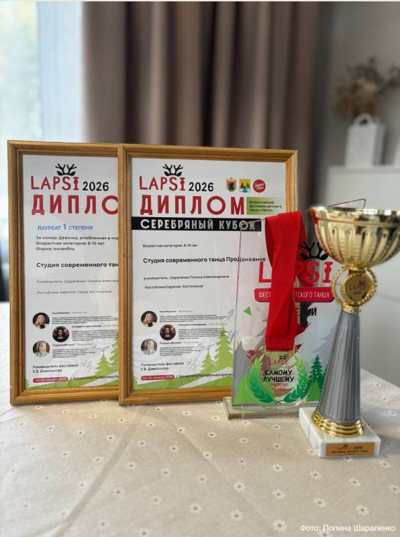 Юные танцоры из Костомукши завоевали серебро Всероссийского фестиваля детского танца «Лапси-2026». Он прошёл в минувшие выходные в Кондопоге и собрал более 600 участников со всей страны, наш город представил коллектив «ПроДвижение».