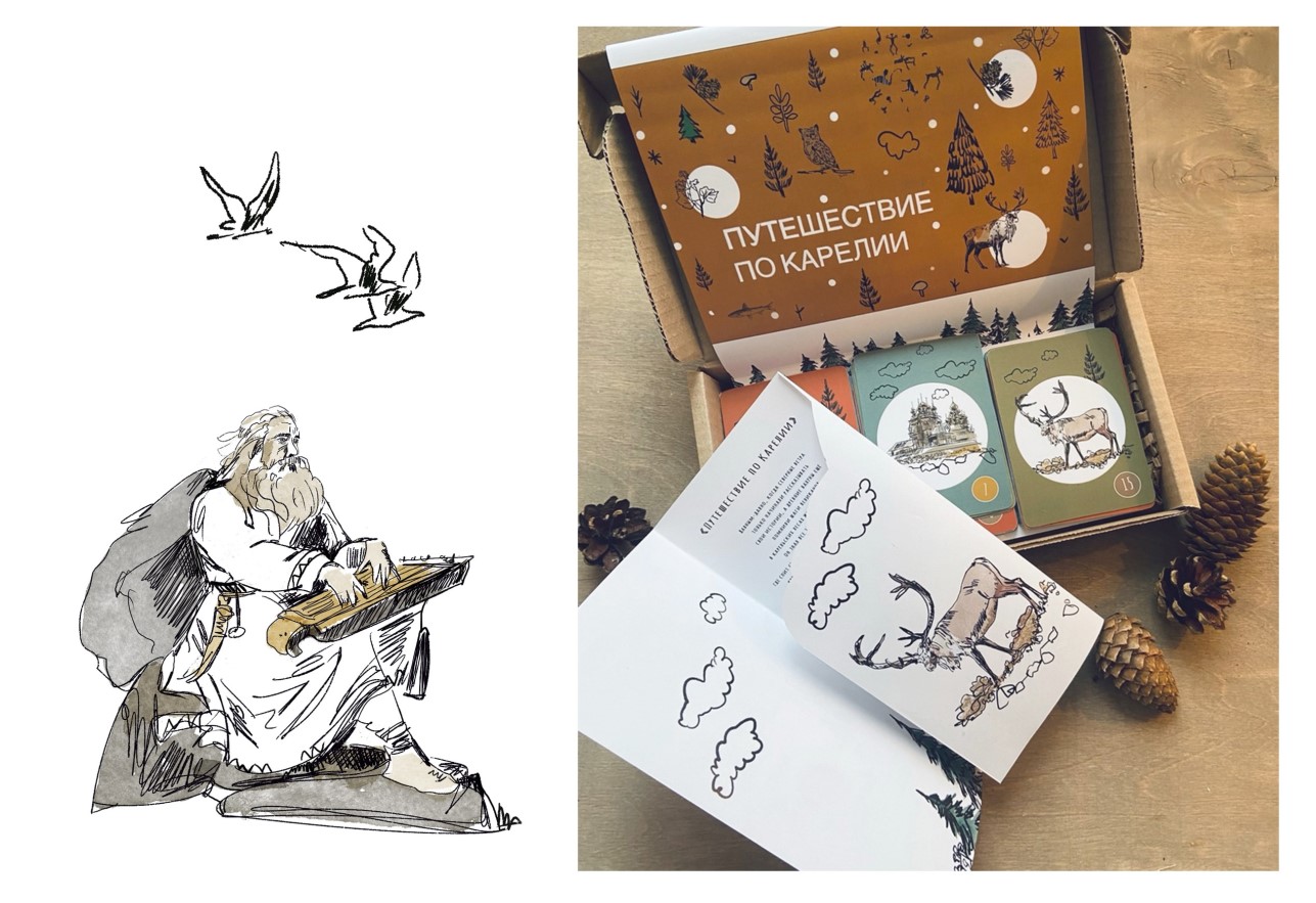 Игра «Путешествие по Карелии» – это набор из 50 карточек, на которых представлены связанные с нашей республикой моменты: ягоды, традиционные блюда, герои «Калевалы», достопримечательности, лесные обитатели. Также к игре прилагается книжка с описанием того, что нарисовано на карточках, и буклет-легенда, рассказывающий о Карелии. Игра рассчитана на детей от пяти лет.