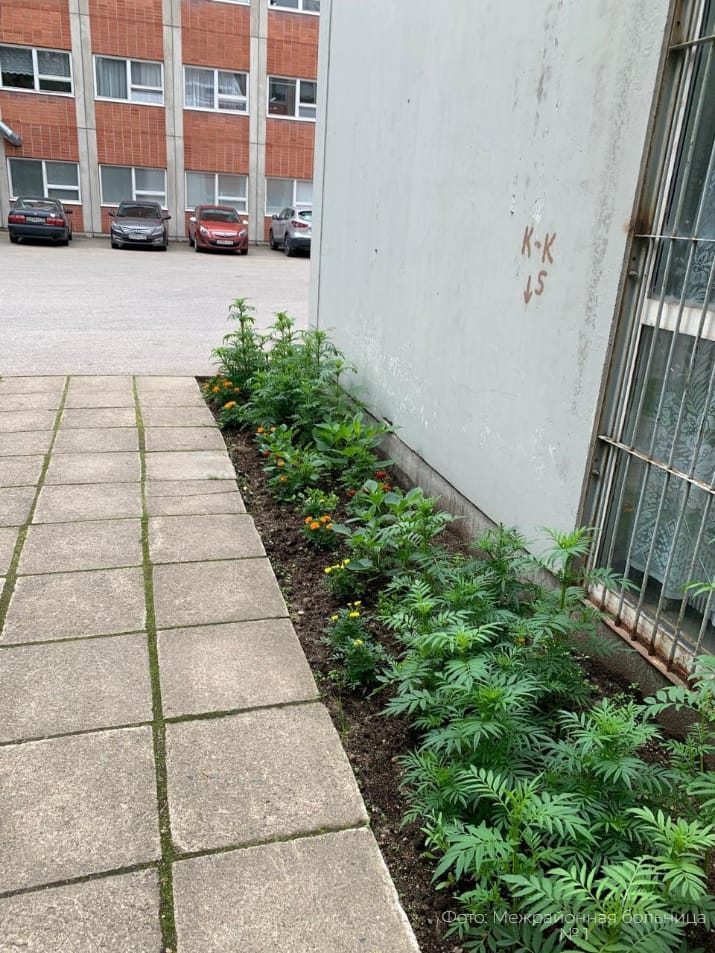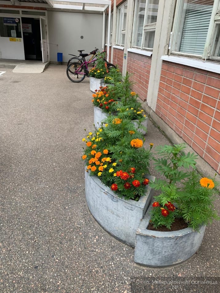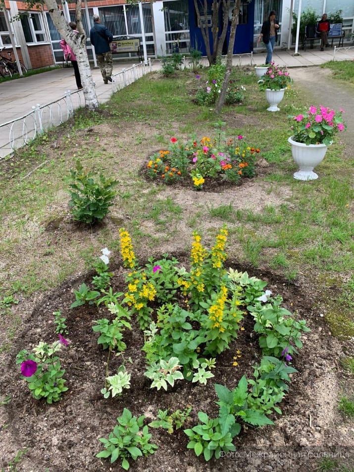 Двор поликлиники в Костомукше преобразился. Здесь появились клумбы и вазоны, в которых зацвели цветы. В Межрайонной больнице № 1 рассказали, кто из сотрудников поликлиники создал эту красоту.