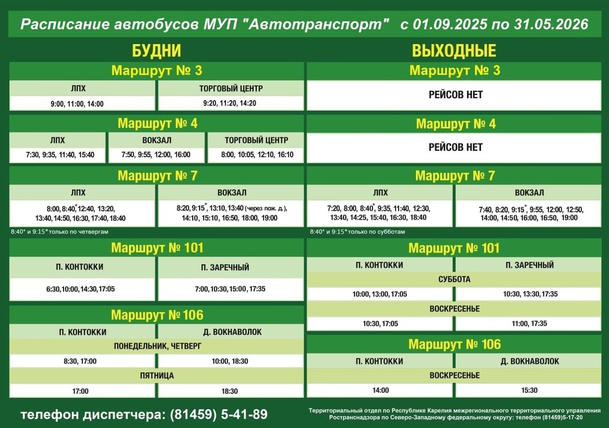 Автобусы «Карельского окатыша» №№ 1, 1К, 2, 2К, 6, 6К, а также рейсы, обозначенные буквами Б, В, будут следовать по маршруту Контокки — Заповедник — Парковая — Интернациональная — ТЦ «Славяне» — ТЦ «Айсберг» — остановка «Звездный» — комбинат. По маршруту «комбинат–город» автобус будет останавливаться в обратном порядке.