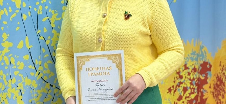 Старшему воспитателю детского сада «Ауринко» Елене Губиной вручили почётную грамоту Министерства просвещения России. Высокая оценка профессиональных качеств